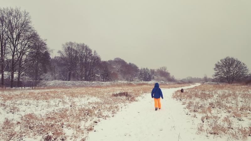 Da wir nicht wissen, ob auch in diesem Jahr noch alle fernen Wege ausfallen, haben wir schlag Neujahr mit den Ganztagswanderungen begonnen. Von der Haustür oder mit dem Sonntagmorgen-Bus geht es hinaus, die nähere Heimat erkunden. Am Sonnabend aber ist am Garten 2 erst einmal der Winterdienst zu verrichten. Das braucht nur 20 Minuten. Der Hinweg per Bus und kurzem Spaziergang, aus dem Wald heraus, vorbei an Einsteins (kurzzeitigem) verschneiten Sommeridyll.