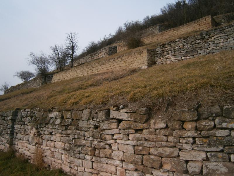Dieses Bild zeigt moderne und Jahrhunderte alte Weinbergmauern.