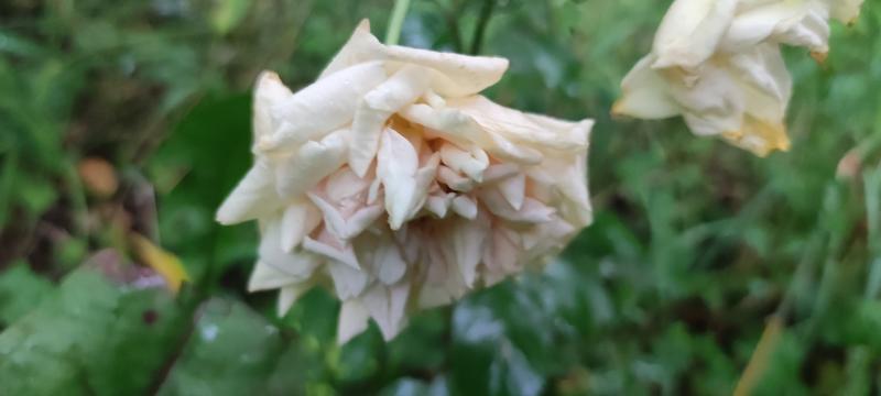 ein paar blüten kriechen noch aus den löchern, drunter die echt stachellose mme bérard (von stange) in einer blassen phase