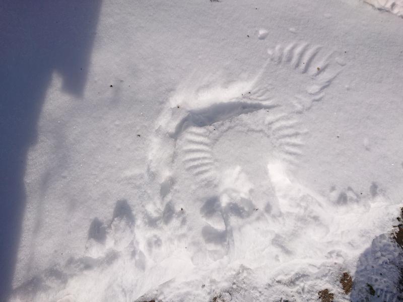 Uns wurde heute ein neues Kunstobjekt im Schnee im Garten geschenkt.