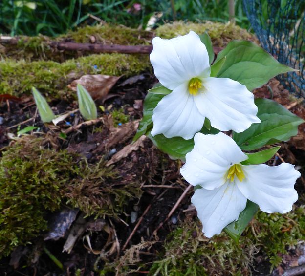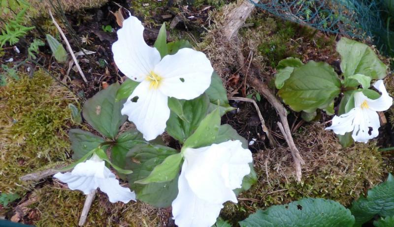 Bisher sieht alles gut aus. Auf den zwei neuen Flößen vor dem Haus, blühen gerade die Trillium grandiflorum und die Cypripedium reginae treiben gerade an.