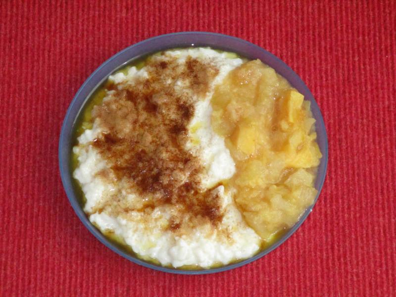 Zum Mittag gab es Milchreis mit Quitten-Apfel-Kompott, flüssiger Butter und Z&Z.