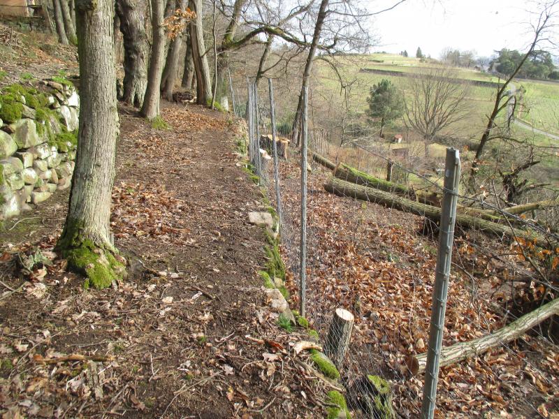 Hier noch ein Blick von der Seite auf die umgeschnittenen Bäume, einer der Bäume hate einen Durchmesser von mehr als 80cm. Was hier deutlich zu sehen ist, dass die Bäume meist am Fuß der Trockenmauern wachsen.