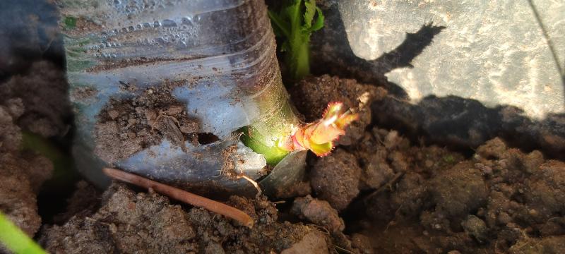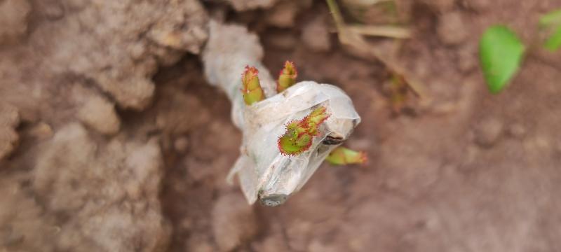 Meine ersten Veredelungen von diesem Frühjahr treiben. Sawyers Plot und Emmeline de Guigné. Gepropft mit Reisern vom Frühjahrsschnitt einer Freundin...