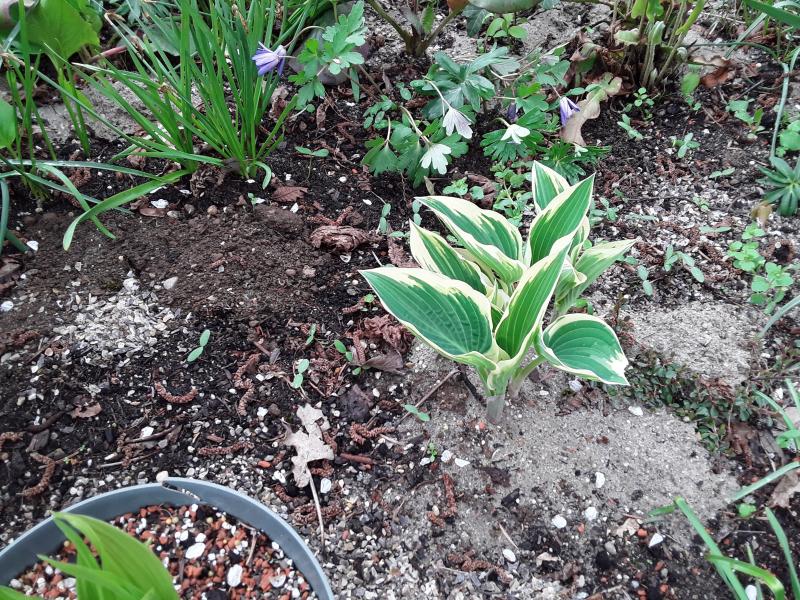 Hier sehen die Hosta bisher wirklich gut aus, keine Frostschäden und auch kein Schneckenfraß... bin begeistert. Bisher wie gesagt...  obwohl heute ein verdammt ungemütlich heftiger, kalter Wund wehte. .  :D