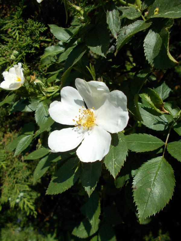 Ich hänge mich mal hier mit an. Mitten in meiner Buchsbaumhecke steht seit einigen Jahren eine weiße einfachblühende Rose. Da dort niemand jemals eine gepflanzt hat, wird die aus einem irgendwie dorthin verschleppten Samen gewachsen sein. Mittlerweile sind die Triebe mehrere Meter hoch und, was ich als Mensch, der wenig bis keine Ahnung von Rosen hat, bemerkenswert finde, nahezu komplett stachellos.