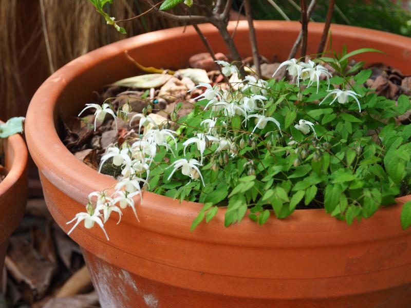 die ganz kleinen eignen sich für Kübel. Epimedium x youngianum 'Niveum' Epimedium grandiflorum 'Nanum'.