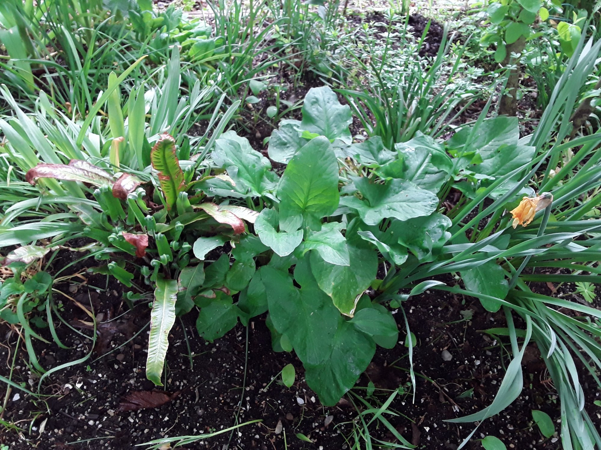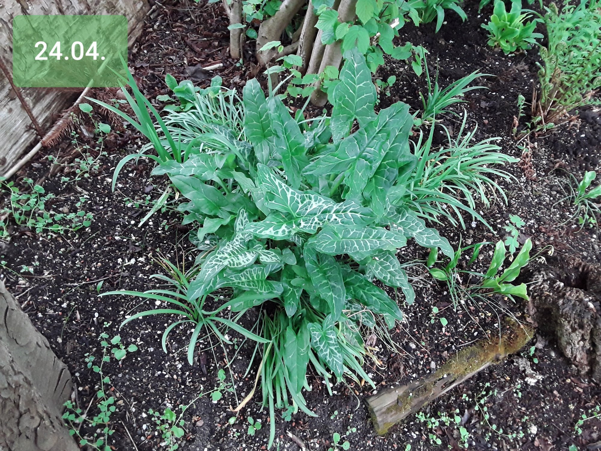 Arum italicum und maculatum sind recht üppig geworden. Hoffentlich blühen sie bald.