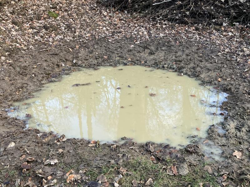 Die „Zeitrechnung“ beginnt jetzt, das Wasserloch ist ( erst jetzt) richtig voll, bis zum leicht Überlaufen. ( Es hat jetzt auch einen kleinen Einlauf vom Hang her, der Boden ist wassergesättigt, wen wundert‘s.)