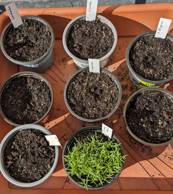 Ich hab mich dieses Jahr zum ersten Mal im etwas größeren Stil an die Aussaat von Kühlkeimern herangetraut. Die Auswahl fiel auf Knautia macedonia, Knautia arvensis, Allium obliquum, Allium senescens, Aquilegia skinneri und Aquilegia formosa.