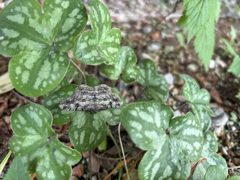 Ein C-Falter, Polygonia c-album, er ist vom Raupenfutter her weiter aufgestellt als der io mit seinen Brennnesseln: verschiedenes Beerenobst, Hopfen und noch ein paar andere. Es ist ein überwintertes Exemplar mit der dunklen Flügelunterseite.