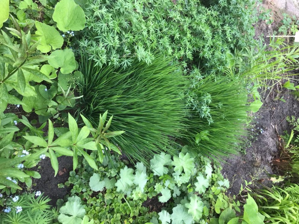 Wenn die hochstauden verblüht sind sieht die Fläche immer traurig aus gerade nach Regenfälle wenn ales nach vorne Rüberkippt, daher wollte ich noch um eine Tiefere Ebene davor etwas mehr Struktur geben mithilfe von Gräsern und Schwertlilien sowie bodendeckenden Arten,