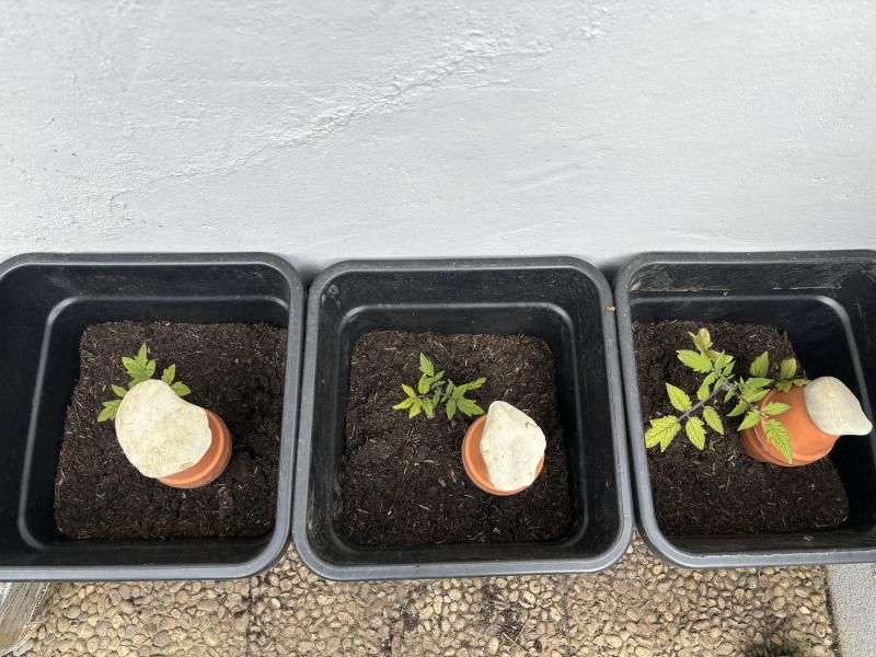 Hab jetzt drei Pflanzen in die Kübel gesetzt. Dabei nur zur Hälfte mit Erde aufgefüllt, damit ich später auffüllen kann, wenn die Pflanze hoffentlich größer ist, um so auch mehr Wurzeln oben bilden können.