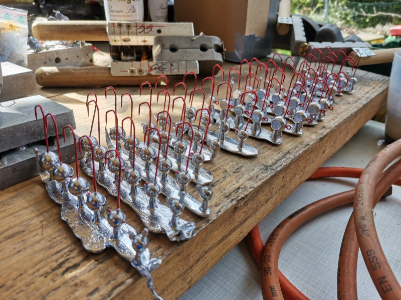 OT: die Haken(bündel) sind noch frisch aus der Gußform. Werden im nächsten Schritt mit dem Seitenschneider vereinzelt. Erst dann werden sie langsam benutzbar.