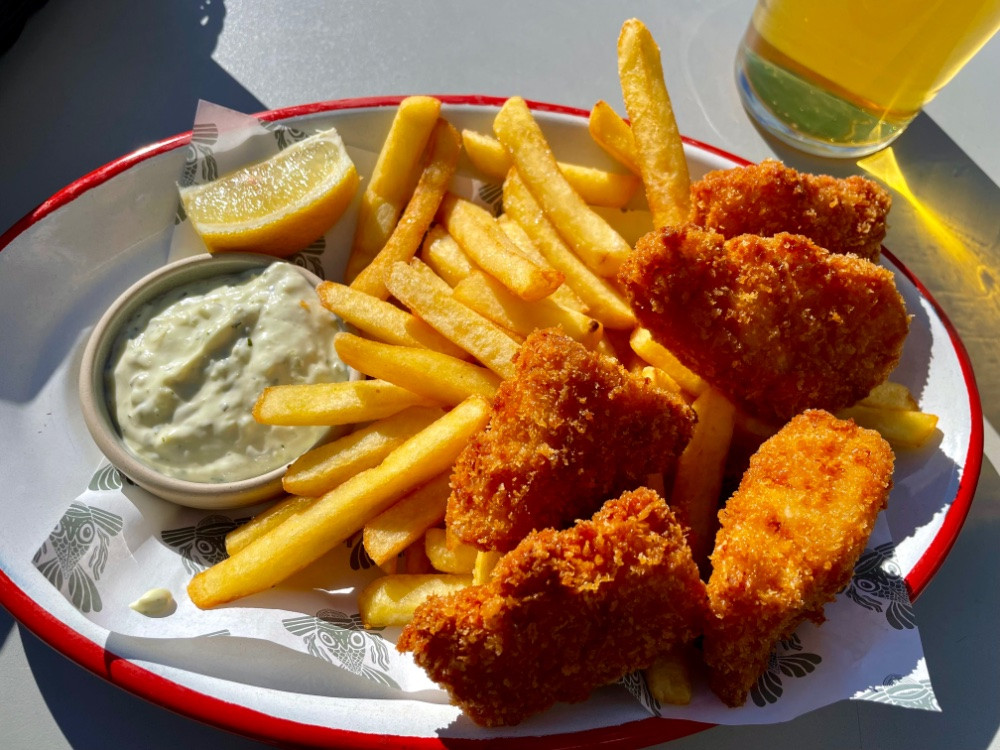 Hier gab es allerdings auch Fisch: Seelachsfilet in einem Bett aus Bohnen und Tomaten, dazu frisches Roggenbrot.