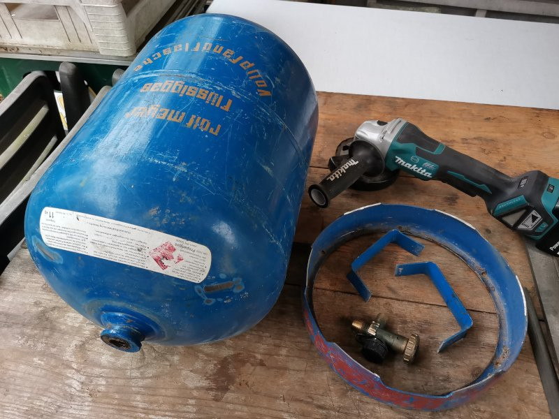Jetzt habe ich endlich mal mit angefangen. Da kommen jetzt 2 Scharniere dran, dann wird sie längs aufgeflext, so dass man sie auf und zuklappen kann. Mein alter Edelstahl Klappgrill ist durchgefault und es muss Ersatz her.