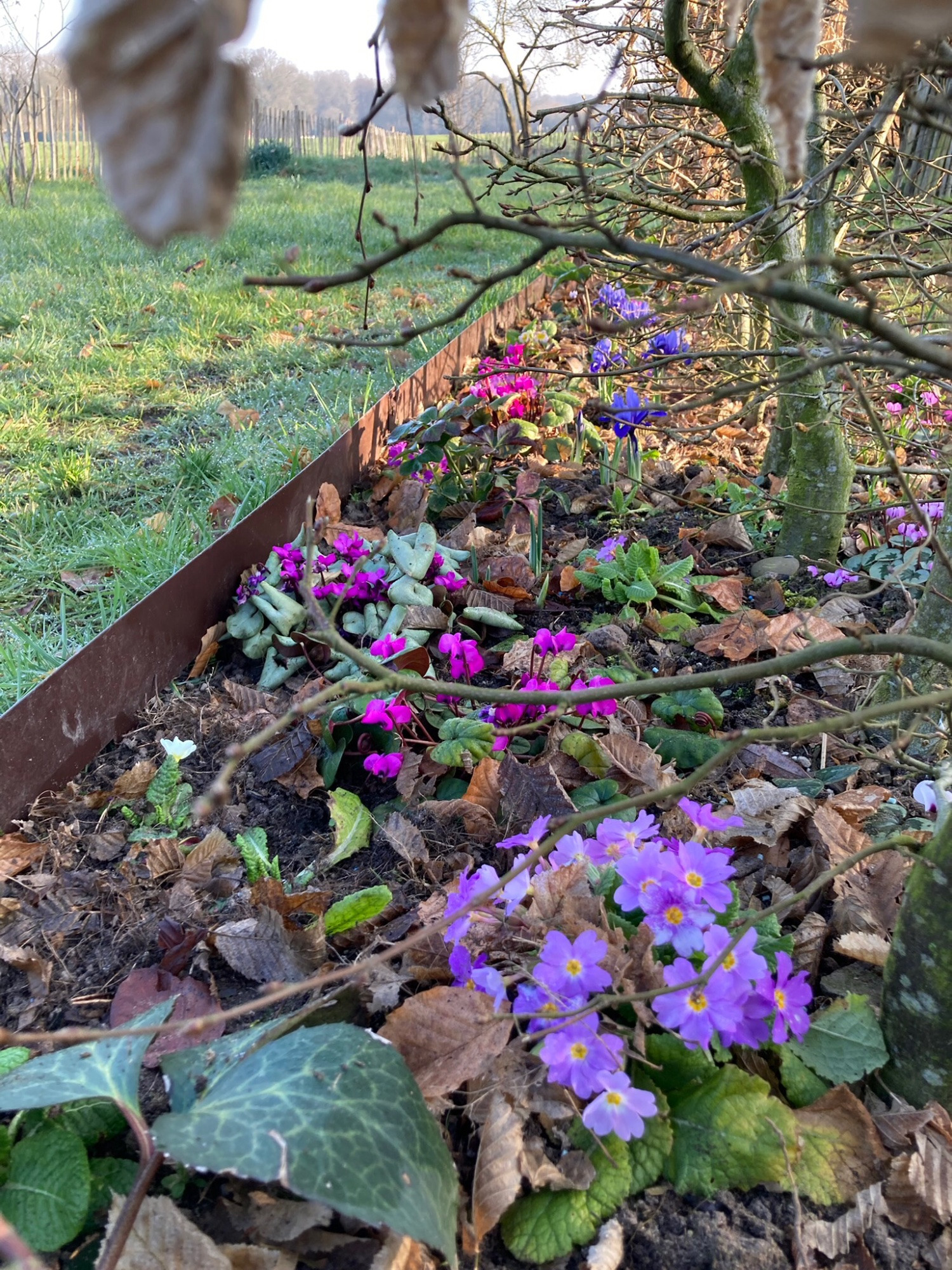 Hier ist „Kleiner Frühling“ unter der Buchenhecke.