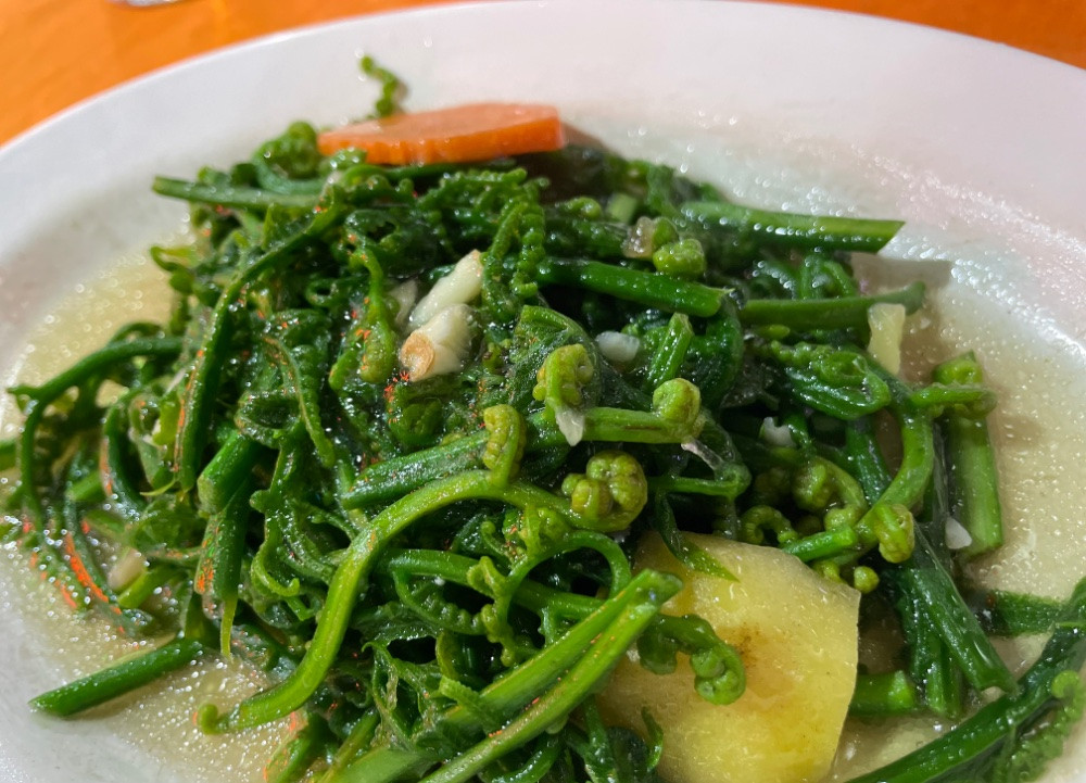 Thomas hat ganz vergessen, dass wir auch etwas Gesundes gegessen haben. Es gab mal wieder den leckeren Farn.