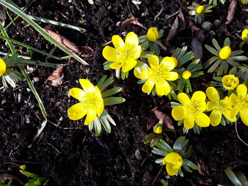 Von denen ist hier leider bis auf ein paar grüne Spitzen nichts zu sehen. Es müsste mal ein paar Grad wärmer sein und die Sonne scheinen, dann geht das ganz schnell (so wie auch bei den Krokussen)...