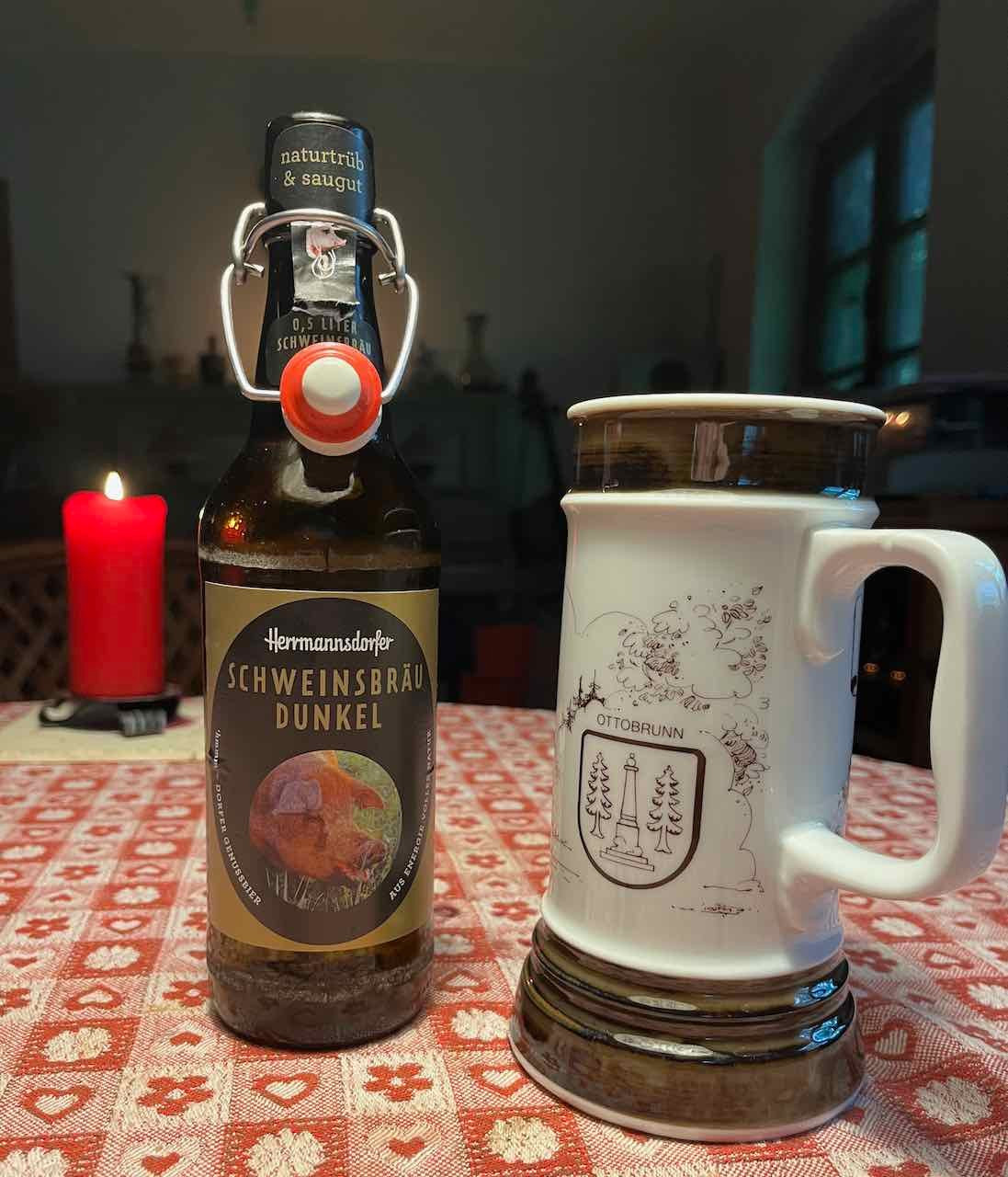 Hauptgerichte Neuburger abgebräunt und Ochsenaugen zum Schweinsbräu dunkel. Die Spiegeleier waren zerlaufen, da sie nicht mehr ganz frisch waren.