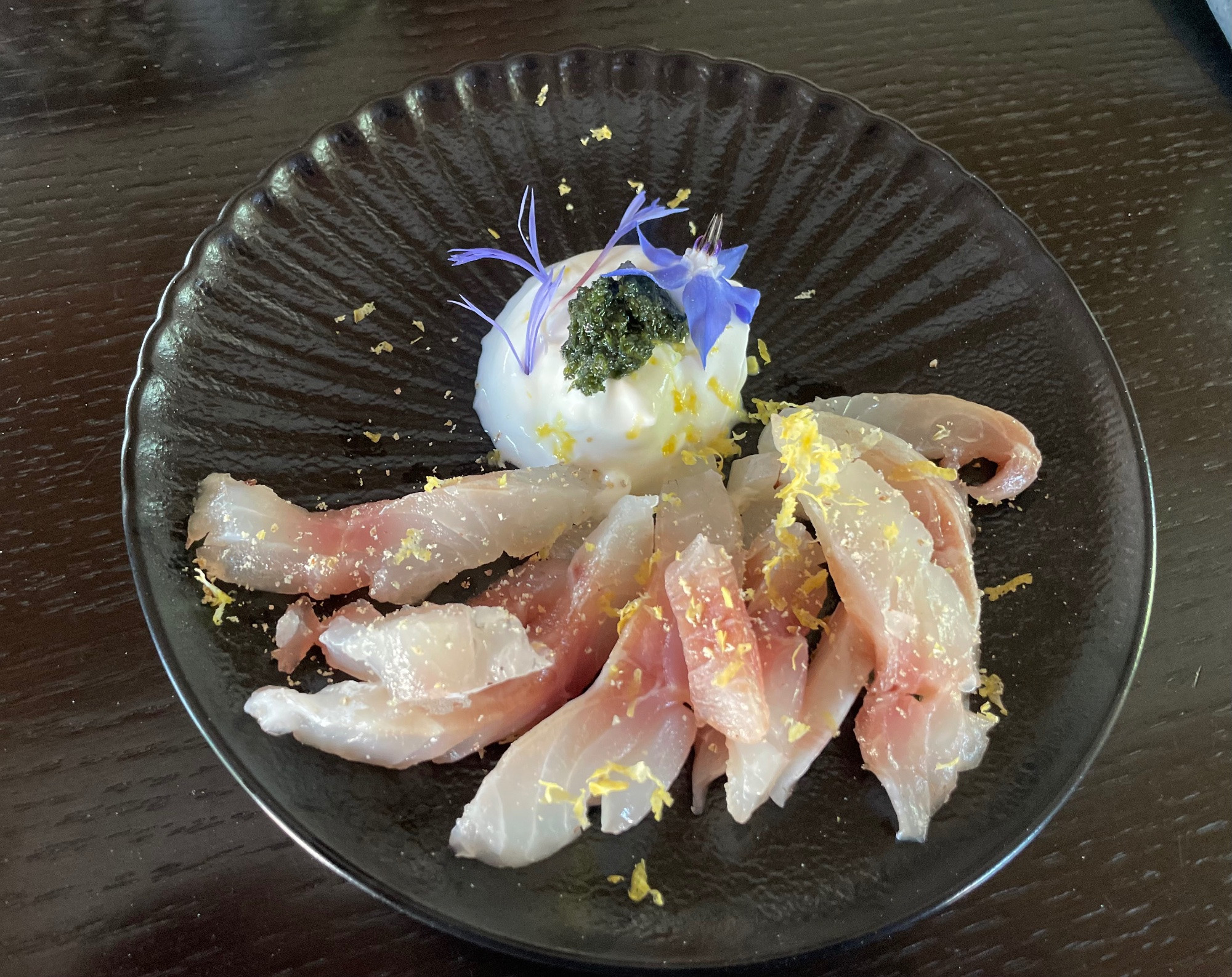 Gebeizte Dorade mit Jogurt und Estragonmus (das was bei der Herstellung von Estragon im Sieb geblieben ist)
