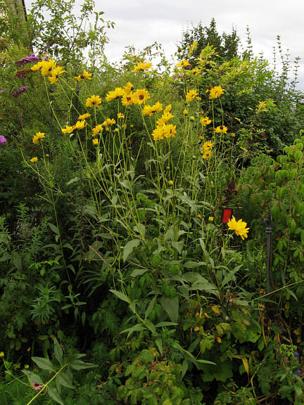 Stengel von über 2 m Höhe mit einer tiefgelben Blüte bringt Rudbeckia nitida. Ihre Wurzeln treiben Ausläufer, die man im ganzen Beet verstreut wiederfinden kann. Ansonsten aber eine anspruchslose Pflanze für den Hintergrund.Schöne GrüßeFuliro