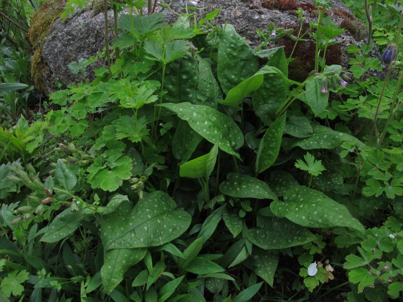 Hier mal auf die Schnelle ein Foto mit Pulmonaria 'Sticky Fingers' (unten) und 'Patchwork' (oben).