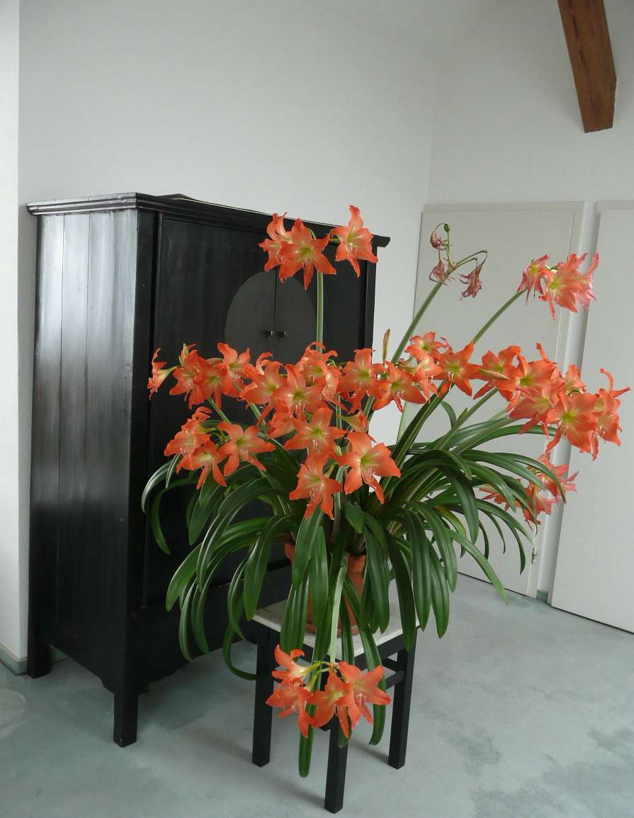 Hippeastrum striatum entwickelt sich zum raumgreifenden Monster, 24 Blütentriebe hat sie in diesem Jahr geschoben. :D