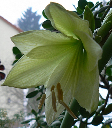 Conni, das ist der absolute blanke Wahnsinn! !!!Wunderbare Pflanze! Sie hat es scheint's ideal bei Dir!Bei mir lebt auch ein immergrüne Art, aber vermutlich eine andere, denn sie blüht nur selten und ich denke etwas dunkler. (Stammt aus der Sammlung meiner Mutter.)NUr für den Fall, dass Du dem Monster mal die Zwiebelchen beschneiden musst.... ich würde mich riesig über einen Ableger freuen und hätte sicher etwas zum Tauschen.