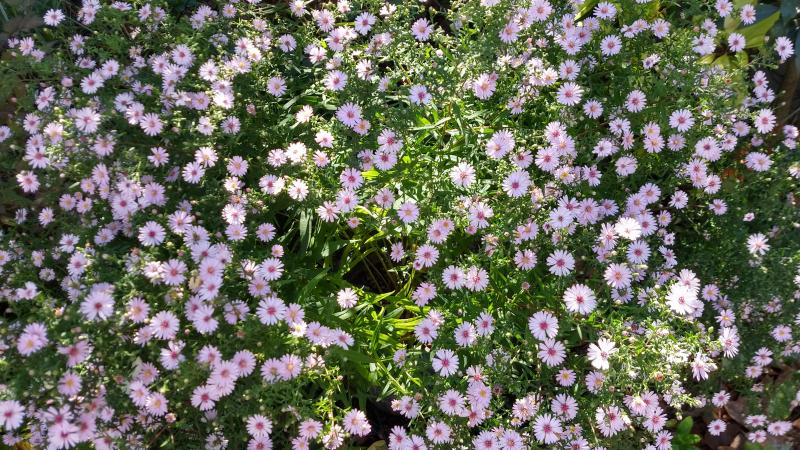 Vielleicht wirkt sie ja im Pflanzkübel so üppig, weil sie nicht mit anderen Pflanzen kombiniert wurde und sich rundherum üppig ausbreiten konnte. Sehr schön, diese spätblühende niedrige Aster, Anke!