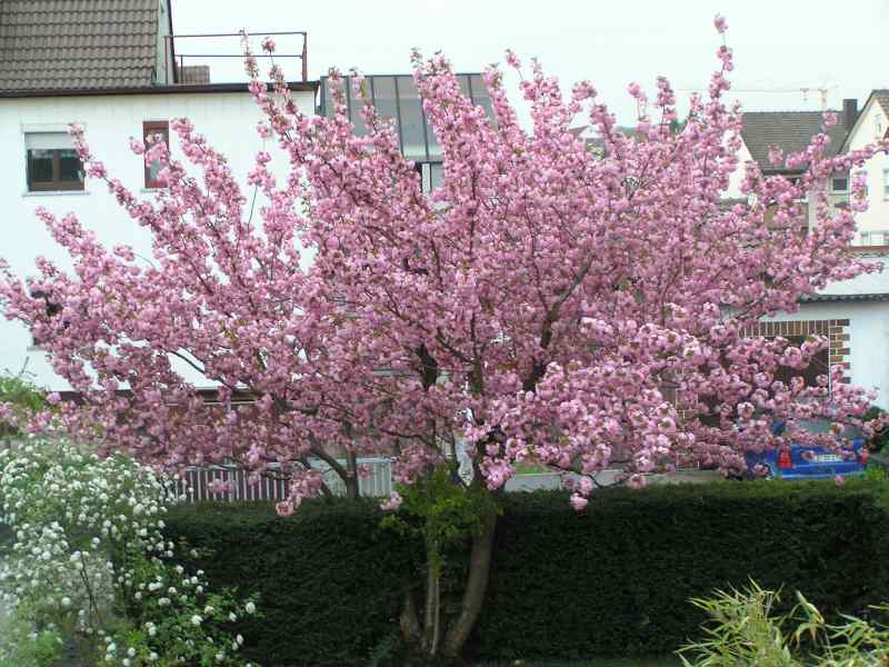 17 grad und es wird immer dunkler draußen. die ersten tropfen fallen vom himmel. ich würde mich ja über ein anständiges gewitter freuen. so richtig mit bumms und blitz!dann wäre es wahrscheinlich aber auch mit der wunderschönen blütenpracht vorbei.so sieht nämlich mein momentaner ausblick vom balkon aus