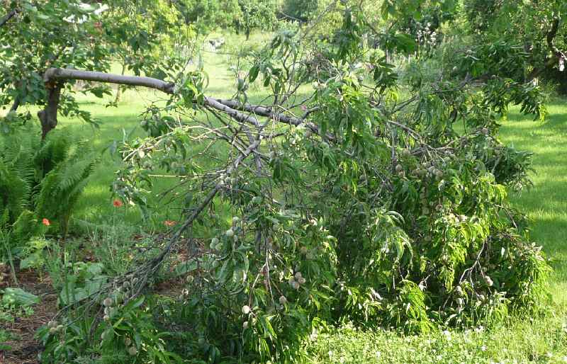 Er hatte kaum Kräuselkrankheit in diesem Jahr. Er hatte so viele Früchte angesetzt. Der Sturm gestern hat ihn gefällt. RIP.