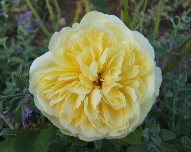 Wieder ein Genuss, eure Bilder! Pinguin und Rosana, wie machen sich denn J. Veitch bzw. Old Port von Habitus (und Größe) und von der Gesundheit her? Gestern Abend noch voll in Blüte, heute Morgen lagen alle Blütenblätter unten (Die Biene interessiert sich eh mehr für die Katzenminze...)