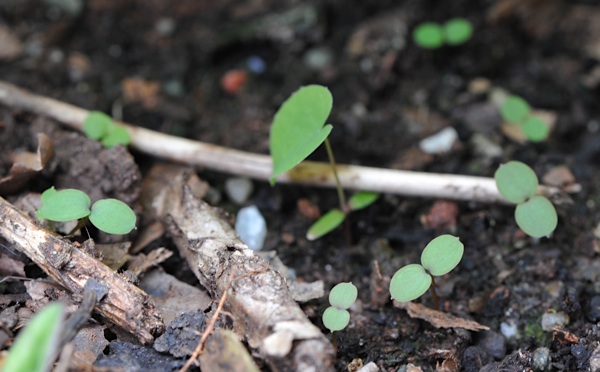 Da war ich in den letzten Jahren immer nachlässig & habe wohl meistens einfach Glück gehabt - vor Spätfrösten habe ich nie etwas geschützt. Seit ich hier mitlese bin ich vorsichtiger geworden und setze auch der ein oder anderen Staude ein Hütchen auf. Was mich immer wieder fasziniert ist der Schattenkindergarten, viel spannender als Aussaattöpfchen zu begutachten. Vieles kann ich mittlerweile recht früh identifizieren, hier habe ich einen Verdacht. Ich könnte mir vorstellen, dass die Sämlinge rund um den Epimediumsämling von Isopyrum nipponicum stammen. Kann das jemand bestätigen?