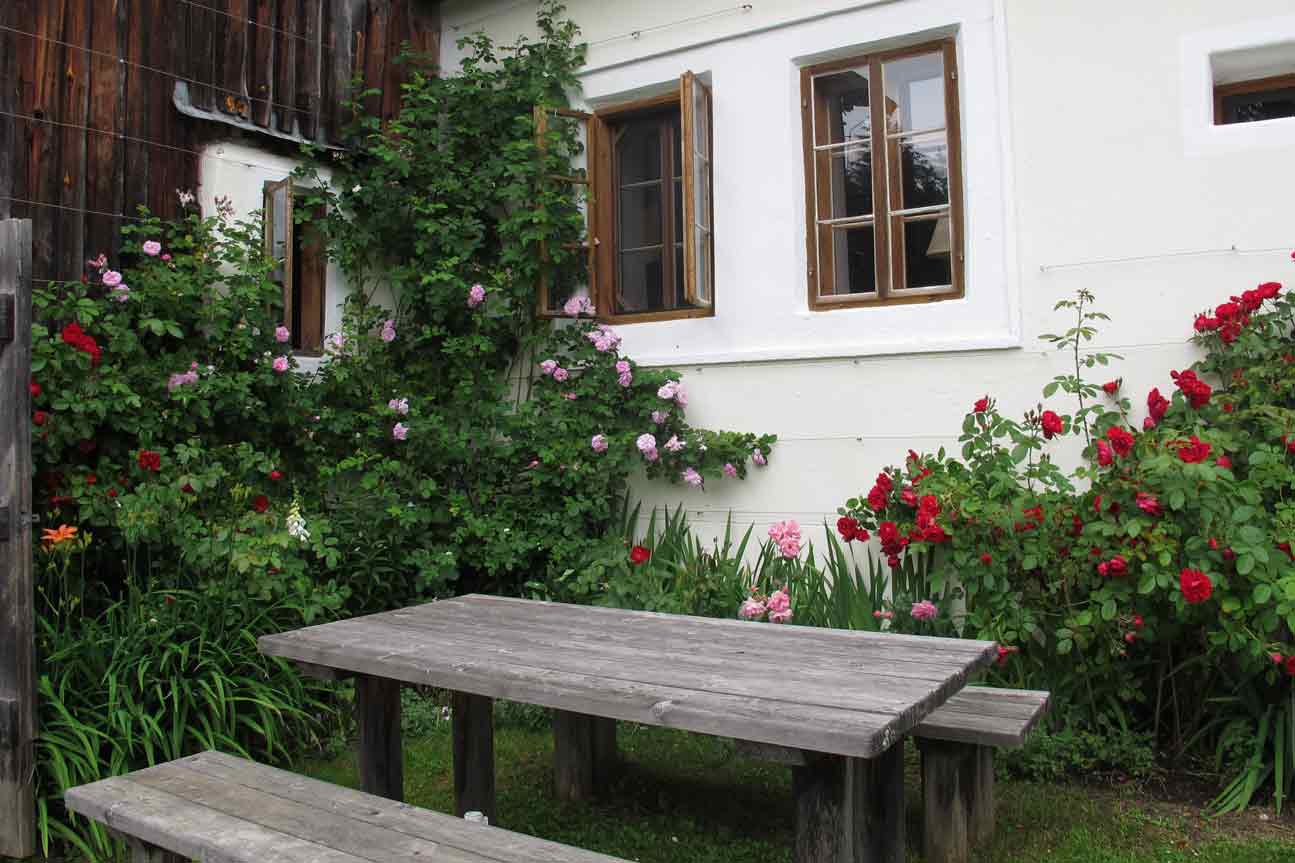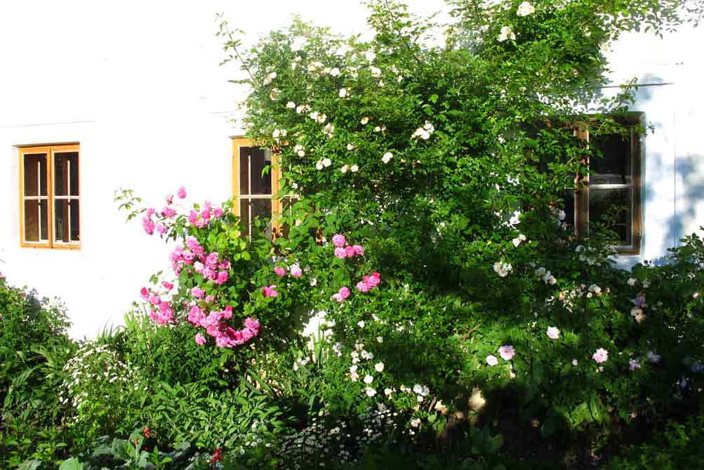 Die Kletterrosen haben nach den Zwangsrückschnitten der vergangenen Jahre ordentlich zugelegt - und geblüht
