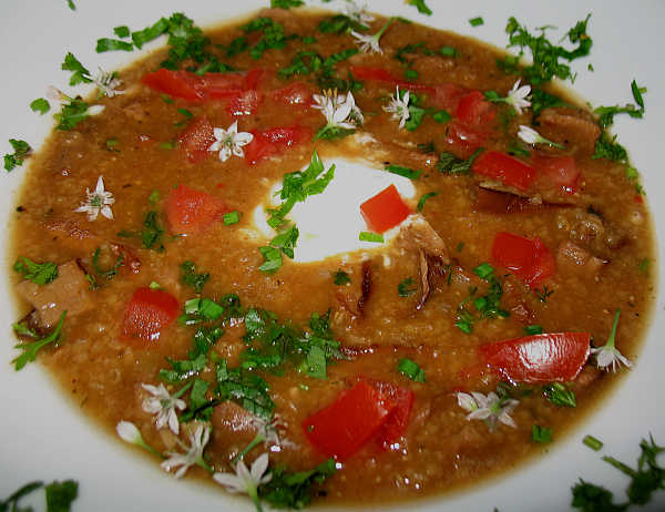 Ja, ein richtiges Feuerwerk!Heute gab es Gurkensalat und Grünkernsuppe mit Steinpilzen.Wahnsinnsfarben!Bei mir gab es frisches Bohnenmus, Wachteleier auf Paprika-Creme und Kartoffel "blauer St.Galler"![]()