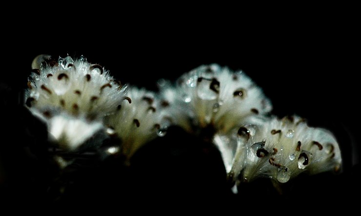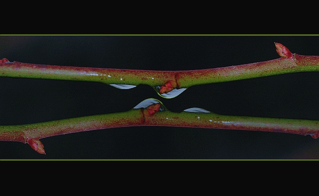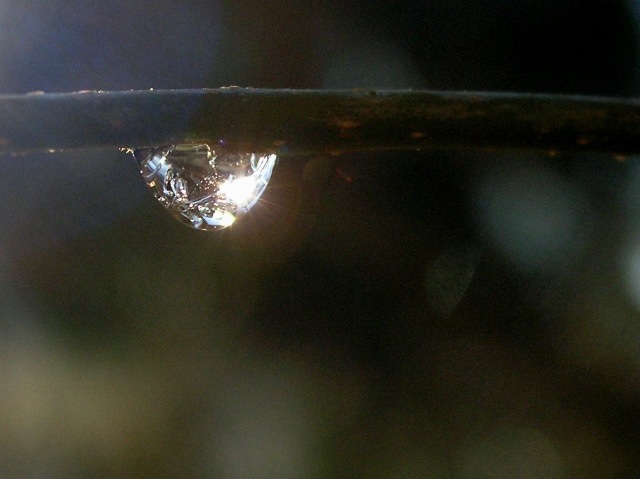 heute morgen war es zu kalt, um Reifaufnahmen zu machen. Schon bei dem Gedanken, die Handschuhe auszuziehen, sind mir die Fingerspitzen abgefroren.Also etwas später, ein Tropfen, der halbflüssig zu sein scheint