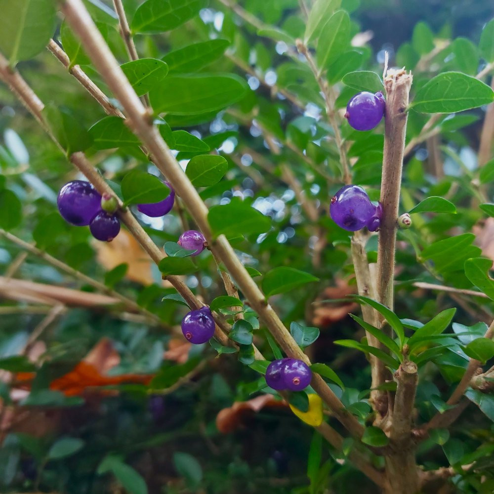 Chrysanthemen , und die Früchte von Lonicera pileata eignen sich gut zum herbstlichen Kreischen.