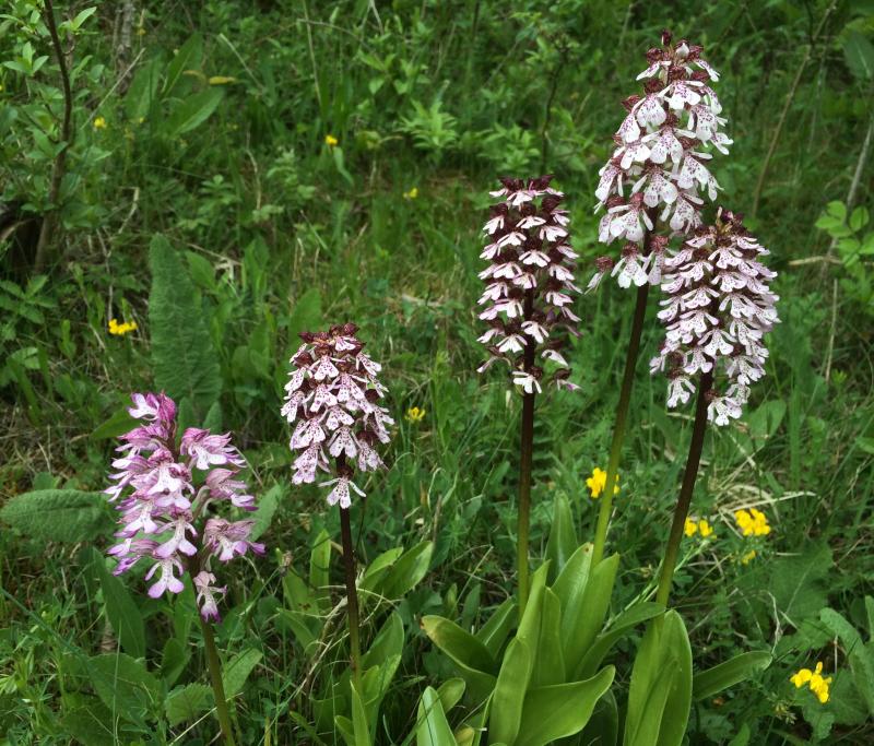 Mit einem Blick auf die Variationsbreite bei Orchis purpurea verlasse ich das kleine Naturschutzgebiet im Norden Thüringens.