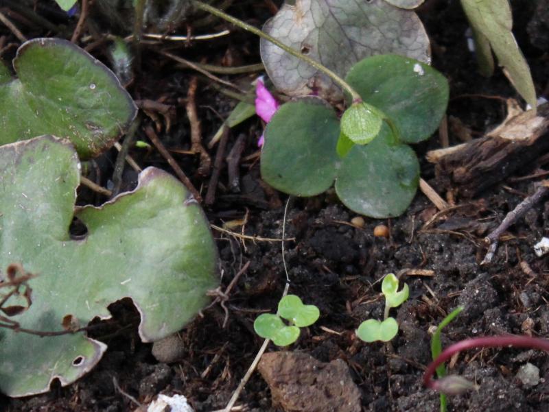 Nein, das sind Sämllinge von Winterlingen. Die wurden nach dem Fototermin entfernt. Hepaticasämlinge sehen ganz typisch aus: die Keimblätter sind schon dreilappig.
