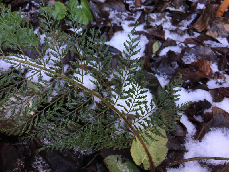 Vollständig unbeeindruckt von 14 Tagen Kahlfrost zeigt sich nach einem frostfreien Tag dieser Polystichum – Zwerg (na ja, für mich könnte er noch zwergiger sein ;))