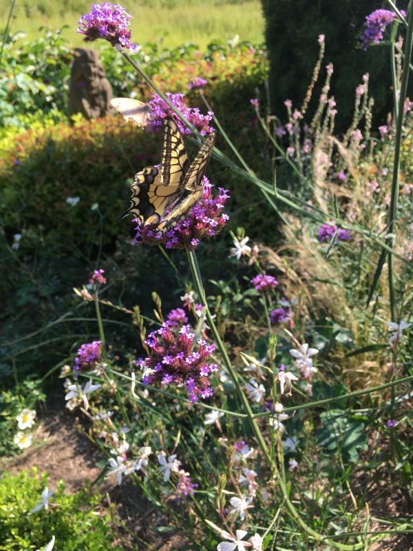 Übrigens mögen Segelfalter und Schwalbenschwänze Verbena bonariensis.