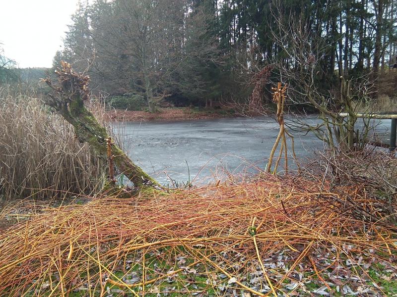 Ach, ein bisschen Arbeit gibt es ja doch noch. Die Rohr kolben müssen noch geschnitten werden. Das mache ich immer wenn das Eis trägt mit der Sense, geht ratz faz. Ging aber auch schon langsamer da musste ich mich komplett umziehen und kalt wars auch😁