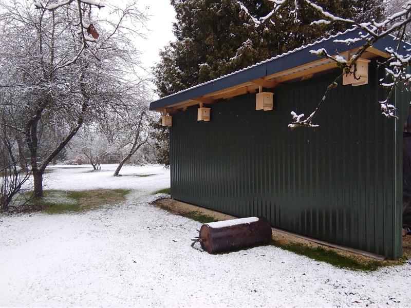 Ob die 4 Häuser, die so Nahe beieinander sind ,alle bezogen werden bin ich schon gespannt. Hab mal gelesen das zum Beispiel Meisen ihr eigenes großzügiger Umfeld brauchen anders als die Menschen die hier grade siedeln. Deren Häuser stehen nur auf Handtuch großen Grundstücken dicht bei dicht.
