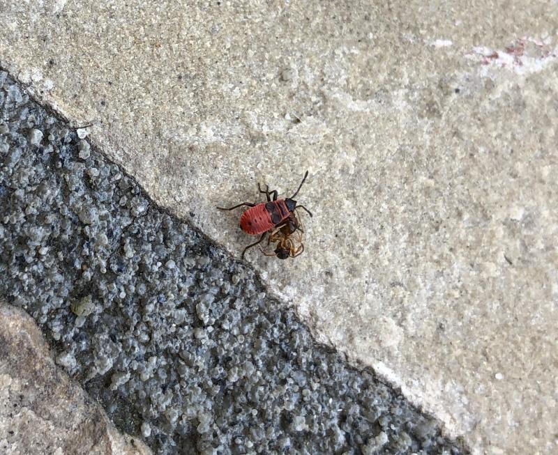 Das ist mir neu. Ich habe noch nie gesehen, dass eine Feuerwanze aktiv ein anderes Tier angreift. Dass sie an toten Tieren saugen habe ich auch schon gesehen. Sie nehmen hier gegen den allgemeinen Trend stark zu.