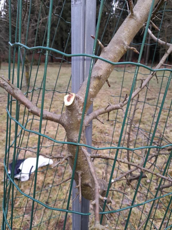Hier ein Bild der Zwille unter Kniehöhe. Wie ich das Trum jetzt schütze... keine Ahnung. :P Oder soll ich radikal die Säge anwerfen und auf einen Trieb den Schreck einkürzen?