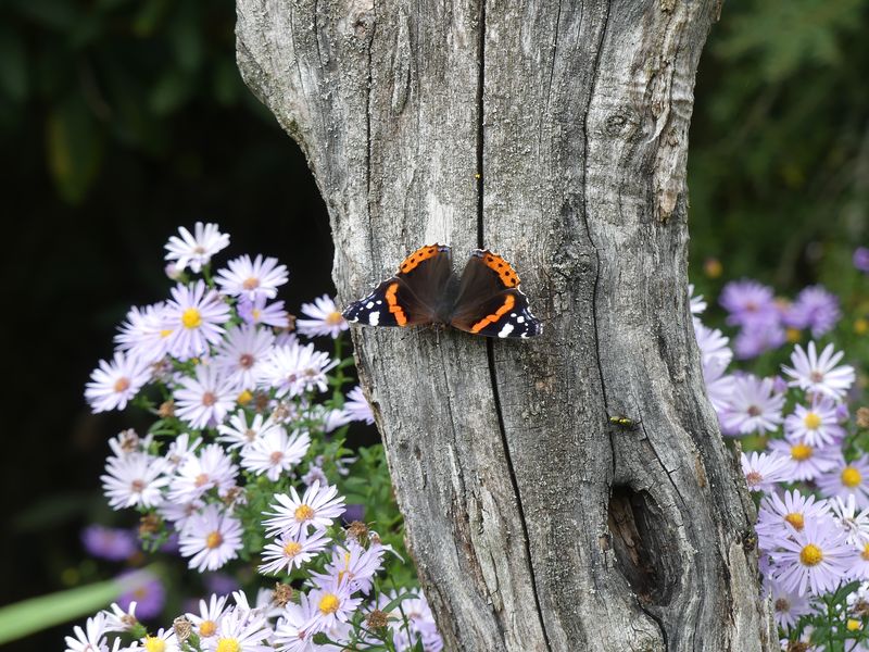 zwerggarten hat geschrieben: ↑5. Sep 2023, 19:52 am sonntag an der unteren oder neben einigen flatterhaften weißlingen immerhin von ferne wenige tagpfauenaugen und ein gierig saugender admiral ganz nahe.