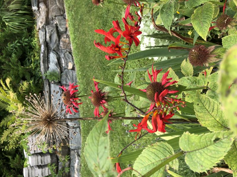 Hier hat sich doch glatt noch etwas Rotes dazwischengemischt- hab gar nicht gesehen, dass die Montbretien austreiben