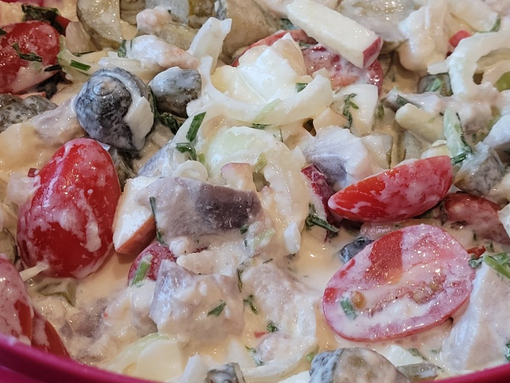 Es gibt heute leckeren Heringsstipp mit dicken Pellkartoffeln. ( zieht schon durch )