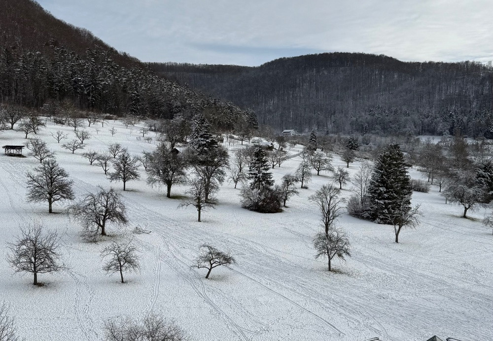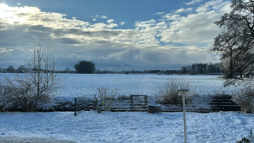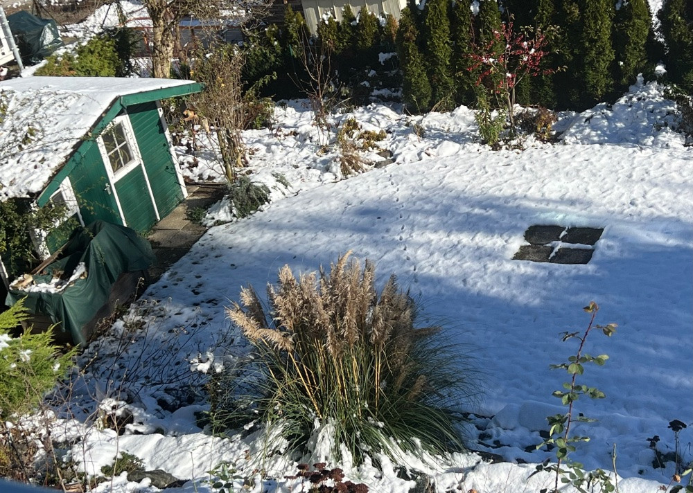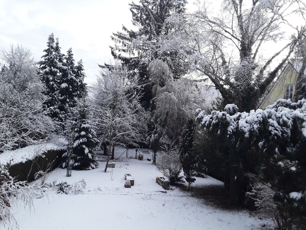 Gestern Nacht gab es 10 cm Schnee und Tagsüber ist kalt geblieben. Heute ist immer noch kalt und wir freuen uns auf die weiße Decke